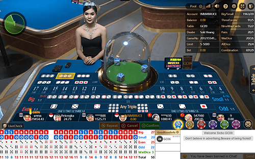 SicBo adalah sebuah permainan kesempatan yang seru menggunakan tiga dadu dengan angka antara 1 hingga 6. Objektif dari SicBo adalah menerka hasil pelemparan dari tiga dadu. Anda dapat bertaruh hasil dari satu, dua, tiga, atau total dadunya dan juga banyak lainnya.